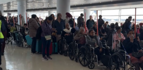 网友晒印度国际航班登机口奇观 乘客全都是在坐轮椅排队