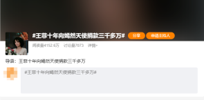 今日,“王菲十年向嫣然天使捐款三千多万”话题冲上微博