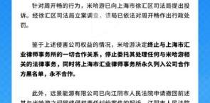 米哈游:终止与上海市汇业律师事务所的一切合作关系