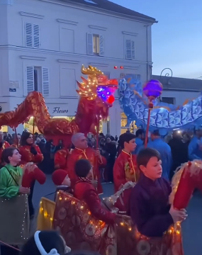 法国万人村庄连续10年自费过春节 舞龙舞狮年味十足