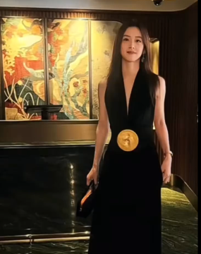 章泽天现身香港逛展 深V黑裙礼服配金腰带优雅大气