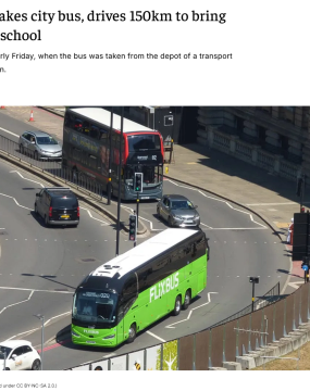 德国15岁少年偷公交车接女友上学 开了130公里后完璧归赵