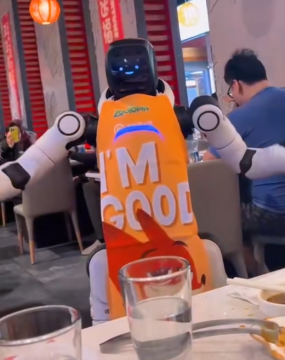 美国一海底捞门店机器人跳舞时变掀桌子 三名服务员都拉不住