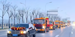 全球第一个 95后小伙结婚 用9辆吸粪车组成婚车队